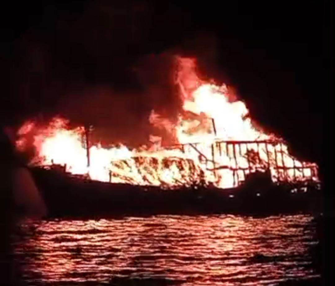 KLM Wahyu Utama Terbakar di Perairan Sukadana, Diduga Akibat Korsleting Listrik
