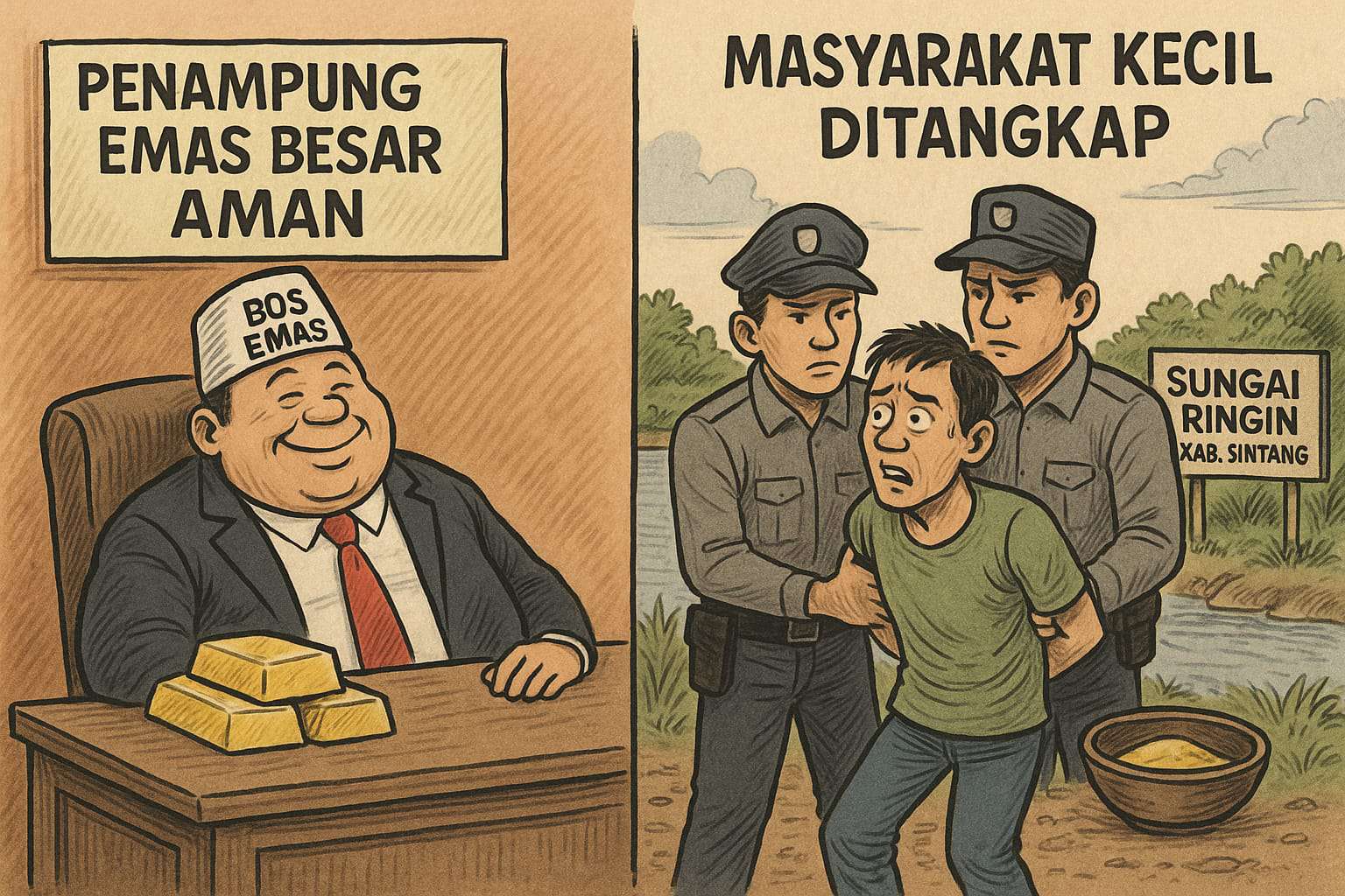 Sementara itu, sejumlah warga Sintang menyampaikan keluhan terkait penegakan hukum yang dinilai tebang pilih. Menurut mereka, penampung besar emas hasil tambang ilegal justru dibiarkan bebas.