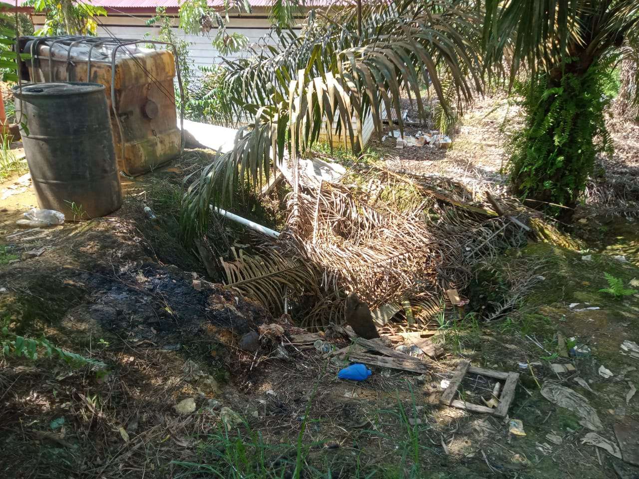 Investigasi media menemukan pelanggaran pengelolaan limbah B3 dan tata kelola gudang yang tidak sesuai standar lingkungan di PT. Mukti Plantation (PT. Mustika Agung Sentosa).